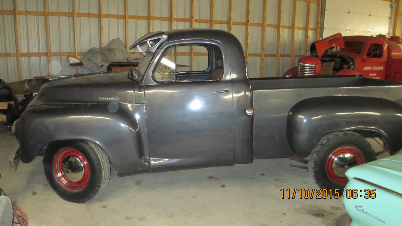 11/15/2015 – Earlier this past week I received an inspection order from One Guard / Road Ready inspections to take a look at this Studebaker truck for a client out in Minnesota. The inspection order stated that the truck was a, “1949 Studebaker M5 pickup.” I did some research before going out to take a look at the truck and discovered that the model designation for this truck is a 2R5, not a M5. 1948 was the last year for the M5 and it had a very late 1930’s look about it. The ’49 to ’53 Studebaker pickups had in my opinion a much more rounded and aerodynamic look about them.